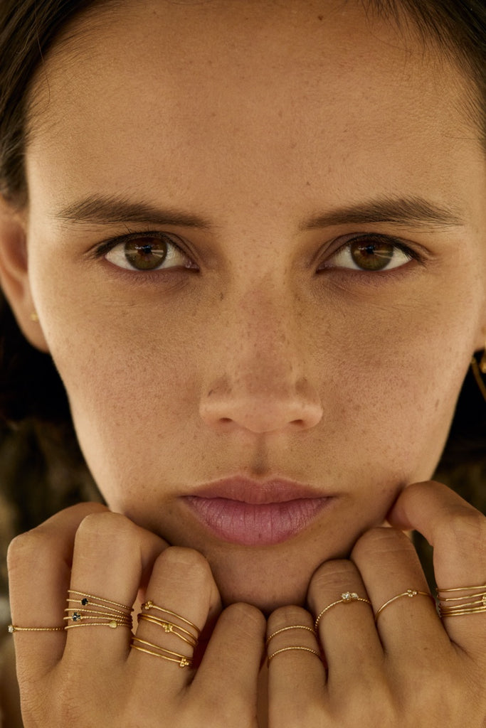 Nuestras joyas están chapadas en oro de 24 quilates para garantizar su durabilidad. No contienen metales alergénicos, solo latón, cobre y oro.