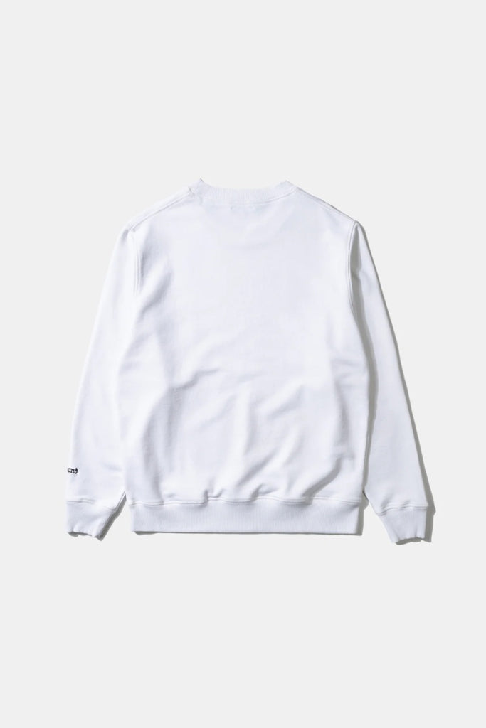Sudadera blanca clásica con puños y bajo rematados. Confeccionada en 100 % algodón orgánico. Presenta un diseño especial "Peak 7" en la parte delantera y el logotipo "Edmmond" en el brazo izquierdo. Fabricada en Portugal.