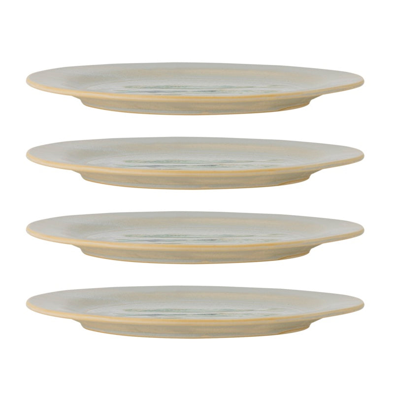 The Hadden Plate is made of stoneware and decorated with an embossed motif of three green fish at the centre. The warm golden-brown rim combined with the playful design creates a charming and lively expression. The plate comes in a set of four, and variations in the glaze make each piece unique.